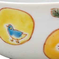 ●九谷焼製品の高台(ハマ)部分には釉薬が施してございません。この為、床の間、花台、棚、テーブル、漆仕上げなど塗装面の比較的柔らかく、傷の付きやすいものの上でお使いになる時には、必ず敷物をご使用くださいますようお願いいたします。