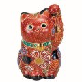 九谷焼の招き猫は、極彩色の花や渦の文様が特長的で豪華絢爛です。盛り絵付けと呼ばれる九谷独特の技法は、数ある招き猫の中でも異彩を放っています。職人の手間がかかった伝統技術の盛り絵付けをおたのしみくださいませ。