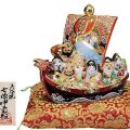 宝船(たからぶね)とは、七福神が乗る宝物を積み込んだ帆船で、珊瑚・金銀・宝石など、様々な宝物が積み込まれているといわれます。 そのため宝船はおめでたい船とされ、置物は縁起物として大変親しまれております。 | ![]() | ||